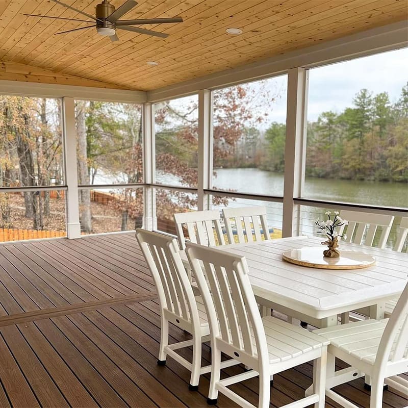 That said, screened porches do create a more enclosed feel. While screens preserve visibility, they do slightly change how open the space feels compared to a covered deck.
